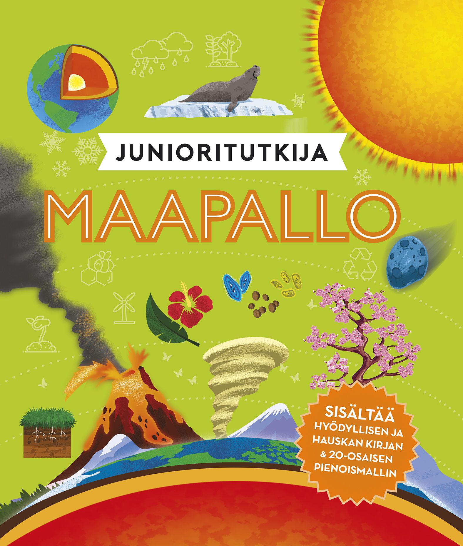 Kirjan mukana saat koottavaksesi tukevan 20-osaisen 3D-pienoismallin planeetastamme Maasta.